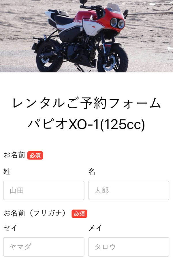 現在ご利用可能車種はCF MOTO パピオXO-1(125㏄)のみです。